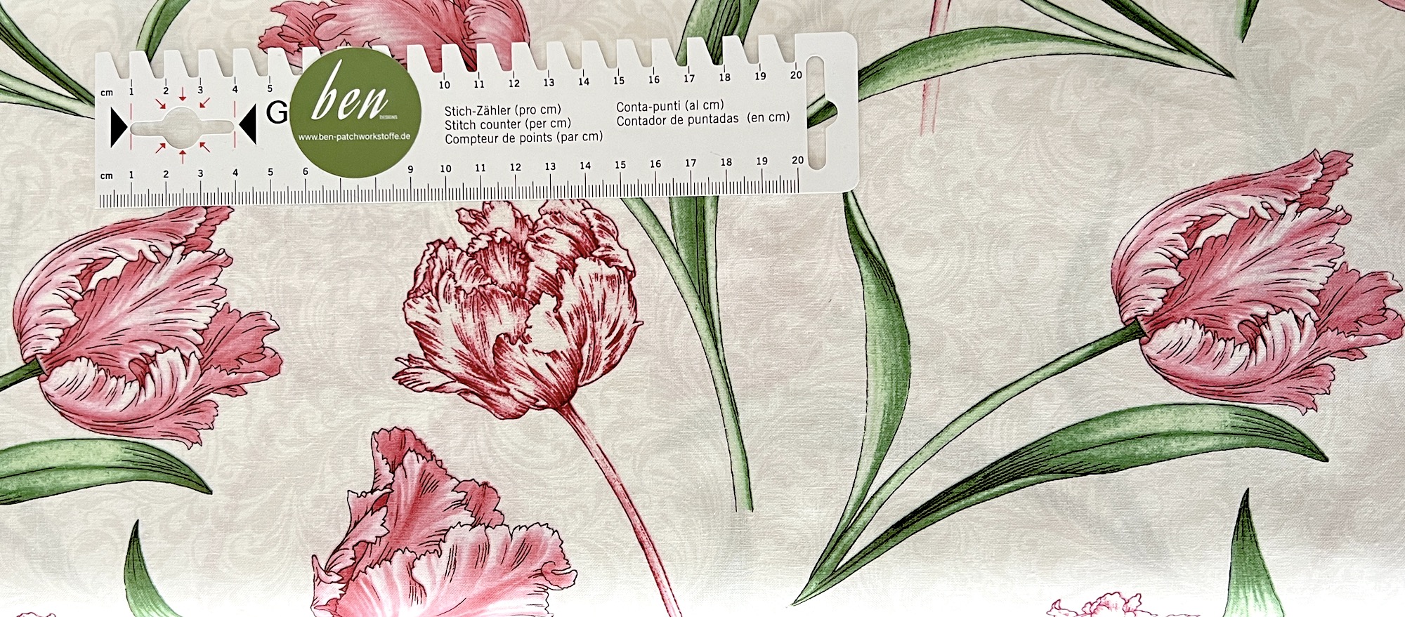 Ein wunderschöner Stoff mit sehr edel wirkenden Tulpen in einer ganz besonderen Zeichnung.